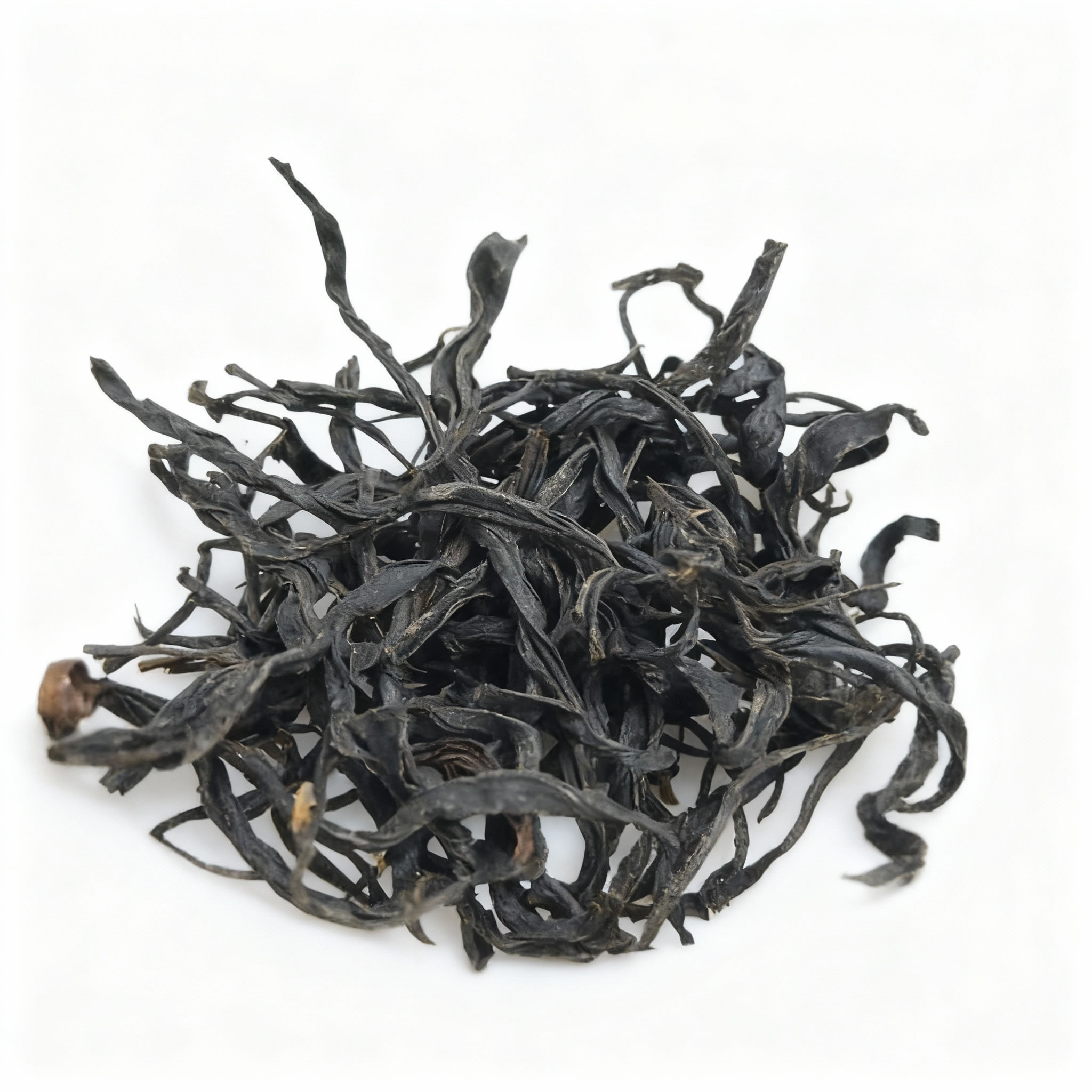 Its dry leaves are slender, tightly rolled, and glossy dark, resembling dragon whiskers, and its limited production makes it highly prized among connoisseurs.